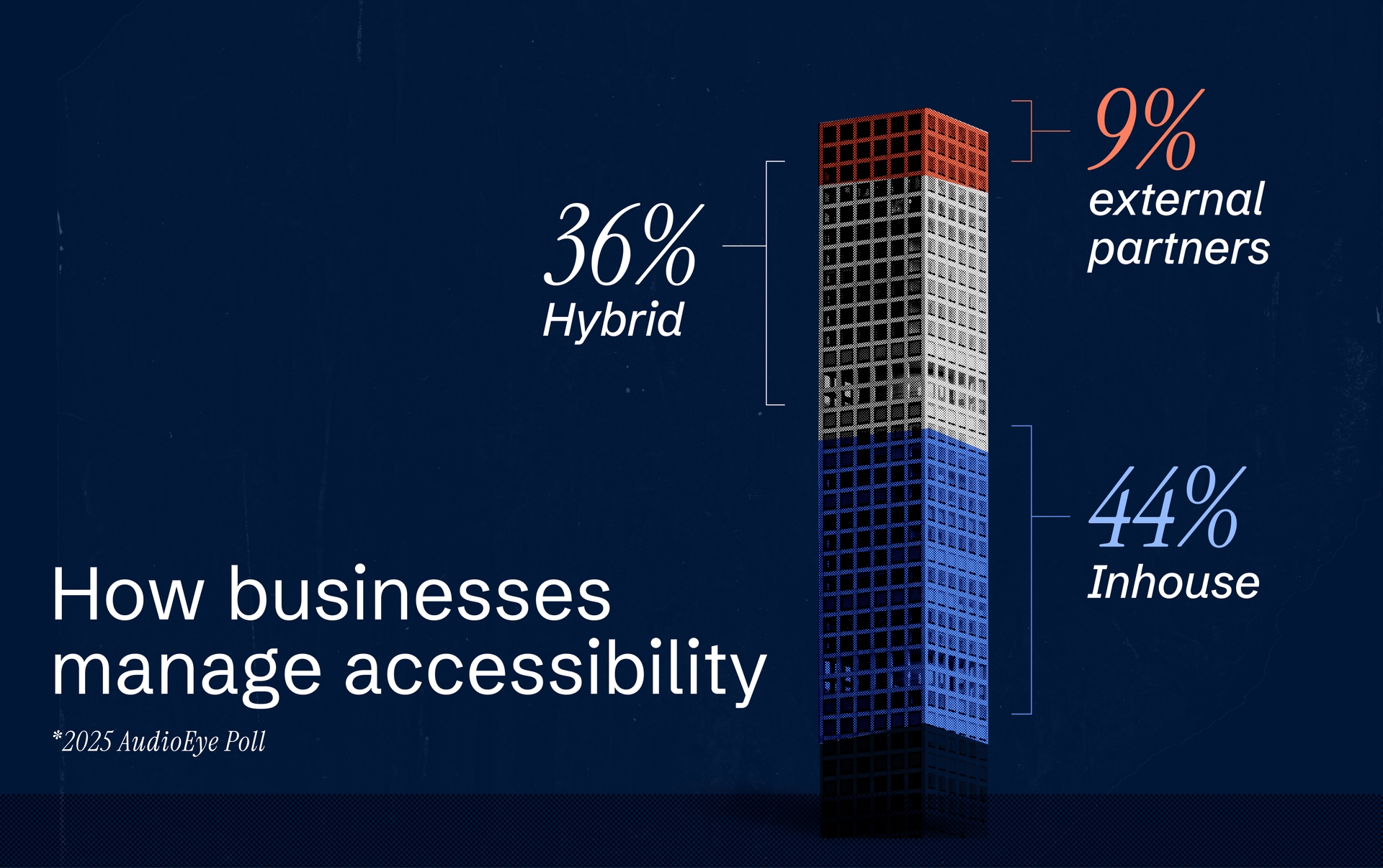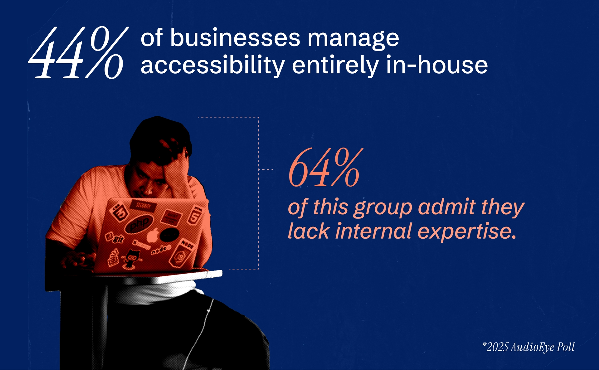 Nearly half of organizations manage accessibility in-house, yet most admit they lack the specialized skills to sustain progress.